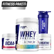 Fitness Paketi içeriğinde 400g Whey Protein, 120g BCAA+, Aromasız 120g Creatine ve Pocket Shaker bulunmaktadır.